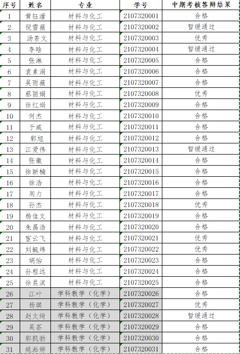 2021级研究生中期考核工作,经个人答辩,专家组评审,现将结果公示如下: