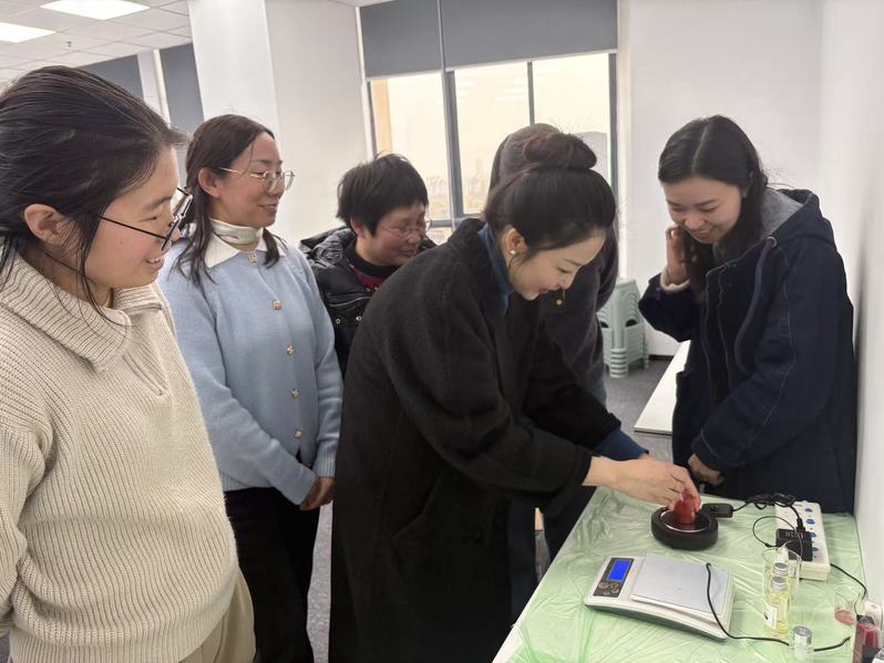 口红DIY环节是本次活动的高潮。公司单佳慧老师为大家介绍了DIY口红的制作步骤和注意事项。调制配方对化院女教职工们来说是“小菜一碟”,她们纷纷化身“美妆达人”,精准称量、加热、混匀、分装、固化、脱模,制作出自己的专属口红。活动现场欢声笑语不断,大家互相交流制作心得,分享美丽秘诀,尽情享受着DIY的乐趣。女性的贤惠干练节俭充分显现:活动后的现场干净如初,能回收利用的绝不浪费, 不留任何垃圾和印痕!