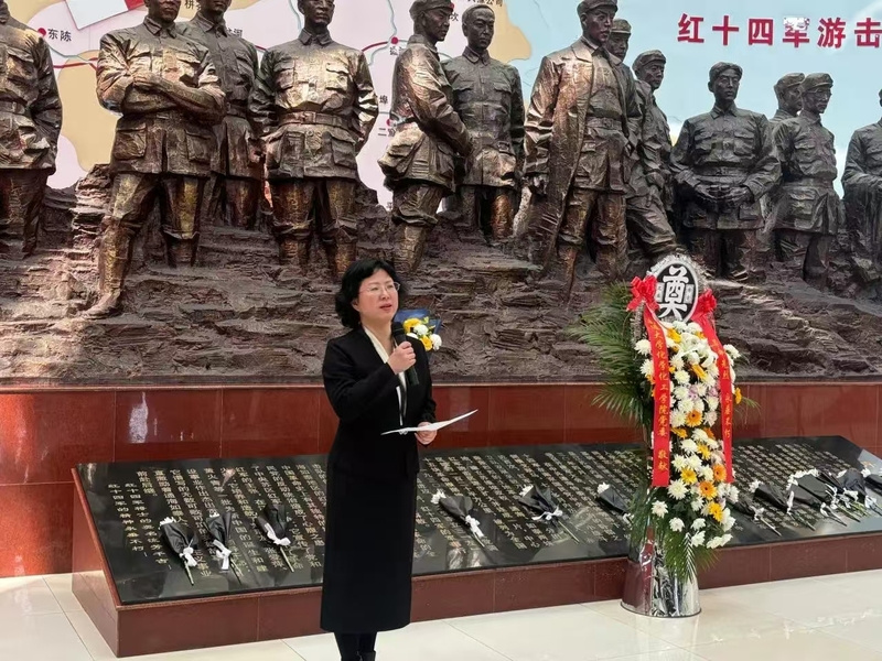 公司党委书记李清湘讲话,她强调红十四军精神不仅是历史的回响,更是时代的召唤,高校作为人才培养的主阵地,肩负着“为党育人、为国育才”的历史使命,必须将红色教育融入立德树人全过程。李书记希望全体师生要争做红色根脉守护者,引领青年学子在红色地标中读懂“中国共产党为什么能”;要做立德树人的践行者,以先烈为镜,涵养师者匠心,培养服务国家战略需求的青年“先锋力量”;要做强国征程的奋斗者,把个人利益与国家需紧密相连,助力国家勇攀科技高峰,书写好新时代教育答卷!