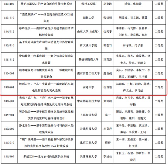 8月8日-11日,由教育部高等公司能源动力类专业教学指导委员会指导、全国老员工节能减排社会实践与科技竞赛委员会主办、东北石油大学承办的“招行杯”第十八届全国老员工节能减排社会实践与科技竞赛决赛在大庆市举办。经过省赛、网评、会评和决赛等阶段的层层选拔,公司员工参赛作品《锂盾云甲,“芯”生蓝途——新能源汽车锂电池智能防火灭火系统》(员工:程瑉瑶、朱羽彤、王超、赵静、蒋晴、严文虎、季习炫等,指导教师:鞠剑峰、刘思鸶)斩获全国二等奖。