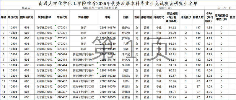 PA视讯推荐2026年优秀应届本科毕业生免试攻读研究生名单